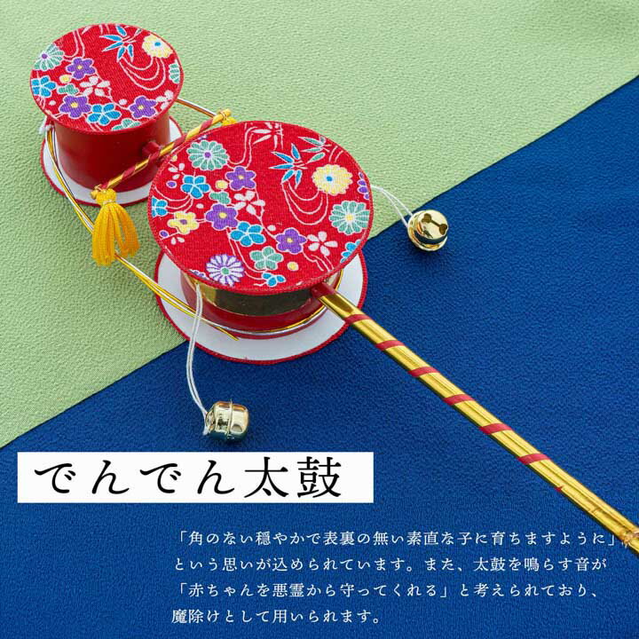 でんでん太鼓の丸い形から「角のない穏やかで表裏の無い素直な子に育ちますように」という思いが込められています。