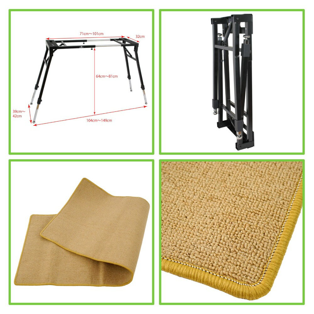 商品詳細高さ:64cm〜81cmスタンド幅:71cm〜101cmスタンド奥行き:32cm脚部幅:104cmから149cm脚部奥行き:39cmから42cm重量:7.5kg耐荷重:70kg---------------SHOP ORIGINAL PSMD145 CR PIANO SETTING MAT Double 145×55 ピアノセッティングマット電子ピアノ用ピアノセッティングマットです。