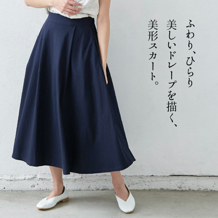 接触冷感 コットン フレアスカート ロングスカート コットン100% 日本製 40代 50代 60代 女性 ファッション レディース ひんやり さらさら 綿100 しわになりにくい 大きいサイズSozai コットン100% 強撚糸コットン100% タックフレアスカート カラー ネイビー・ブラック サイズ サイズ ウエスト(ゴム上がり) ヒップ 総丈 裾巾 フリー 約66cm 約150cm 約81cm 約132cm LL 約72cm 約154cm 約84cm 約132cm サイズ計測方法はコチラ>>> 原産国 日本製 素材 綿100% 洗濯表記 手洗い 裏地 なし ポケット あり モデル着用サイズ フリーサイズ メール便 × 特徴 ふわり、ひらり、美しいドレープを描く美形スカート。