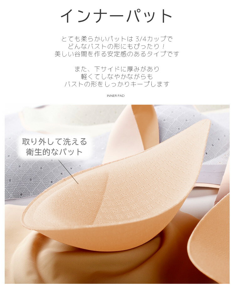 とても柔らかいパッとは3/4カップでどんなバストの形にもぴったり! 美しい谷間を作る安定感のあるタイプです。