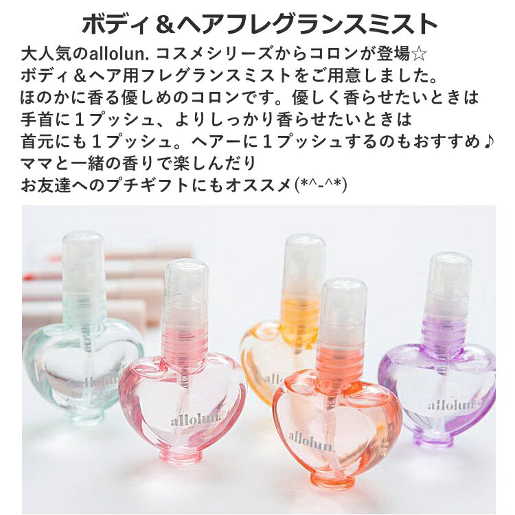 キッズ コスメ allolun. ほのかに香る優しめのコロン ボディ&ヘアフレグランスミスト 20ml オールオルン フレグランスミスト女児 ママと一緒 | 子供服 子供 こども こども服 女の子 女児 キッズ化粧 プチギフト プレゼント _U281932
