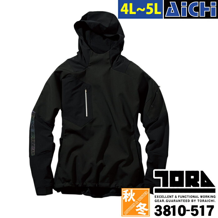 【4L】寅壱 秋冬 マルチレイヤーシェル 撥水 透湿 ナイロン ストレッチ パーカー フーディー アノラック ヤッケ 黒 ブラック アウトドア サイクリング 自転車 釣り かっこいい 作業服 作業着 大きいサイズ 3810-517