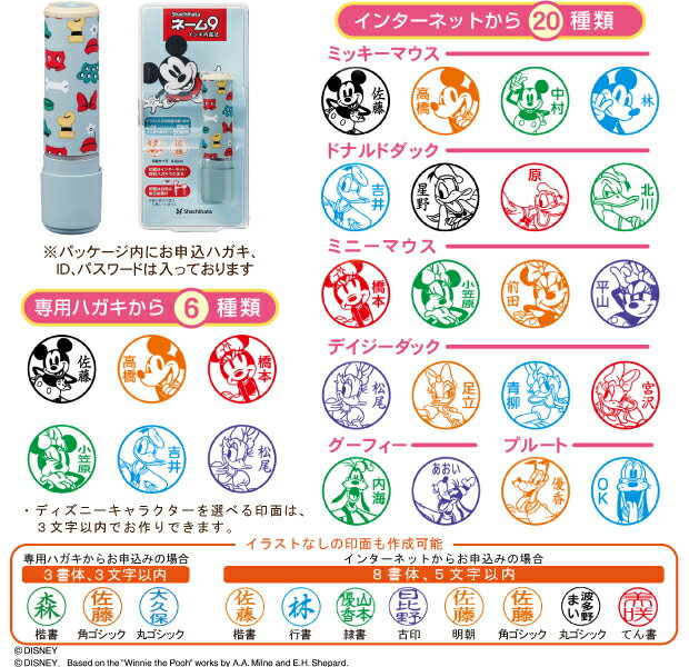 【ポスト投函送料無料】シヤチハタ ディズニー ネーム9 【※メールオーダー式】シャチハタ 9.5mm 印鑑 ネーム印 認め印 認印 判子 はんこ スタンプ キャラクター グッズ ミッキーマウス ミッキー ミニー プーさん かわいい べんり おしゃれ シャチハタ印鑑 文房具 公式 ht
