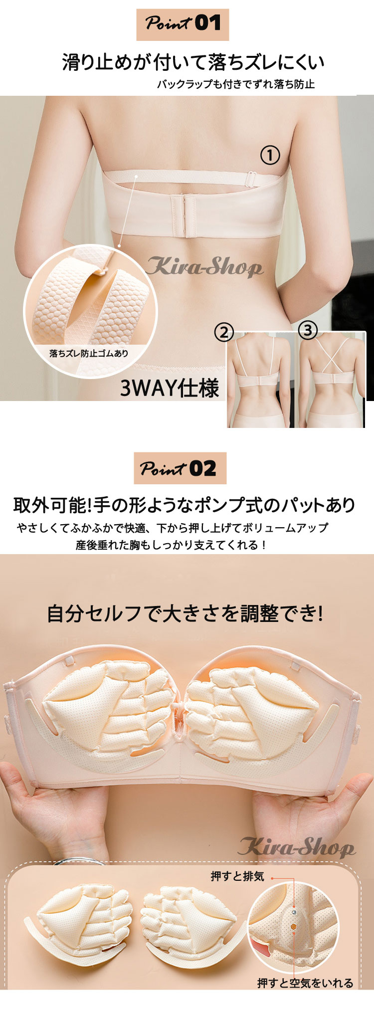 ストラップレスブラ 超盛ブラ ブラジャー ノンワイヤー 肩紐なしブラ 盛りブラ チューブトップ 脇高 盛れる 育乳 谷間メイク 取外パッドあり おしゃれ ドレスブラ オフショルダー用 ブラジャー ベアトップ用 調整ホック付き 脇高 落ちズレにくい レディースブラ