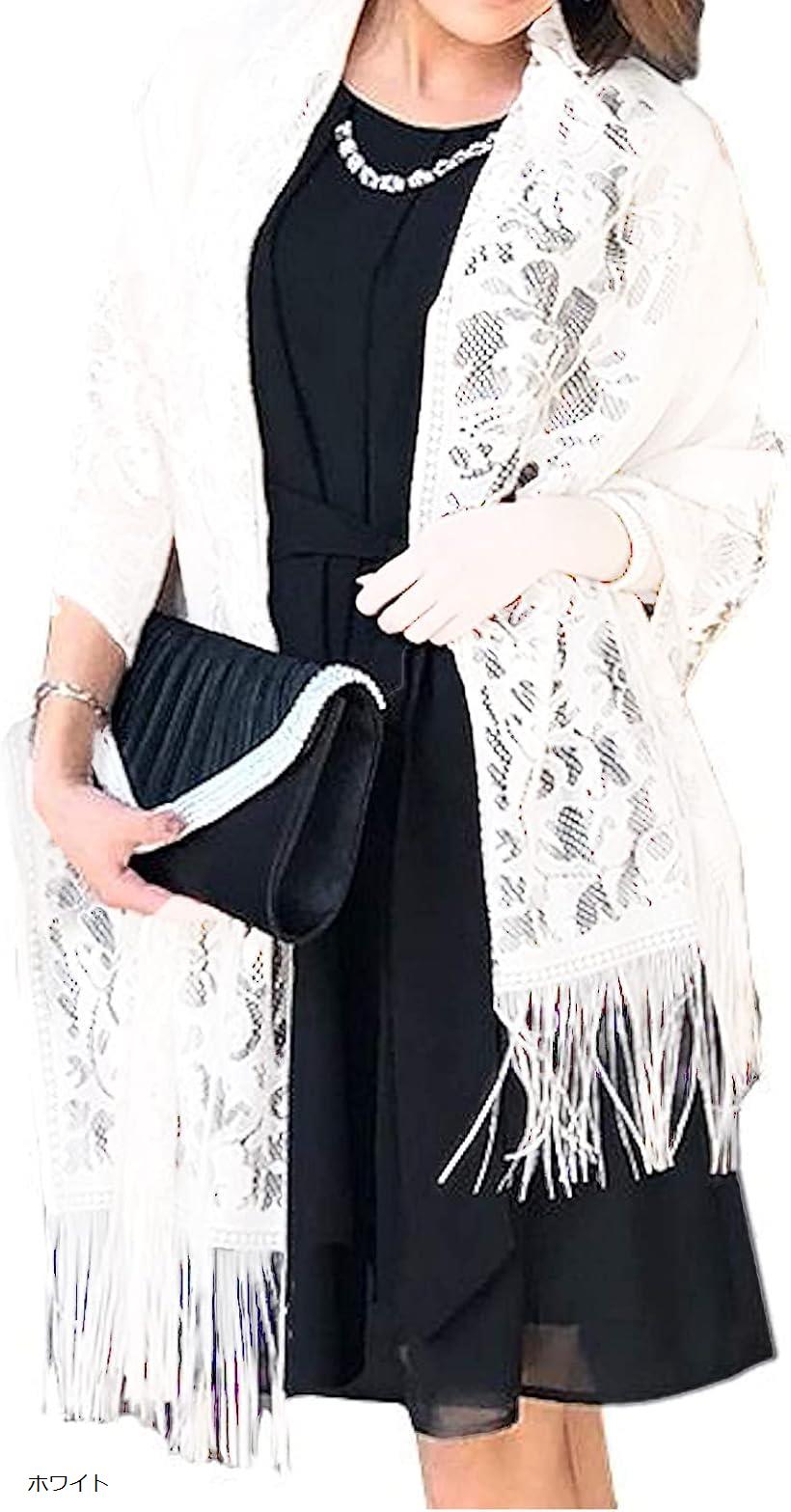 ストール レース フォーマル 結婚式 二次会 パーティ パーティー ショール UVケア 冷房対策 慶弔 慶弔用 レディース(ホワイト, Free Size)