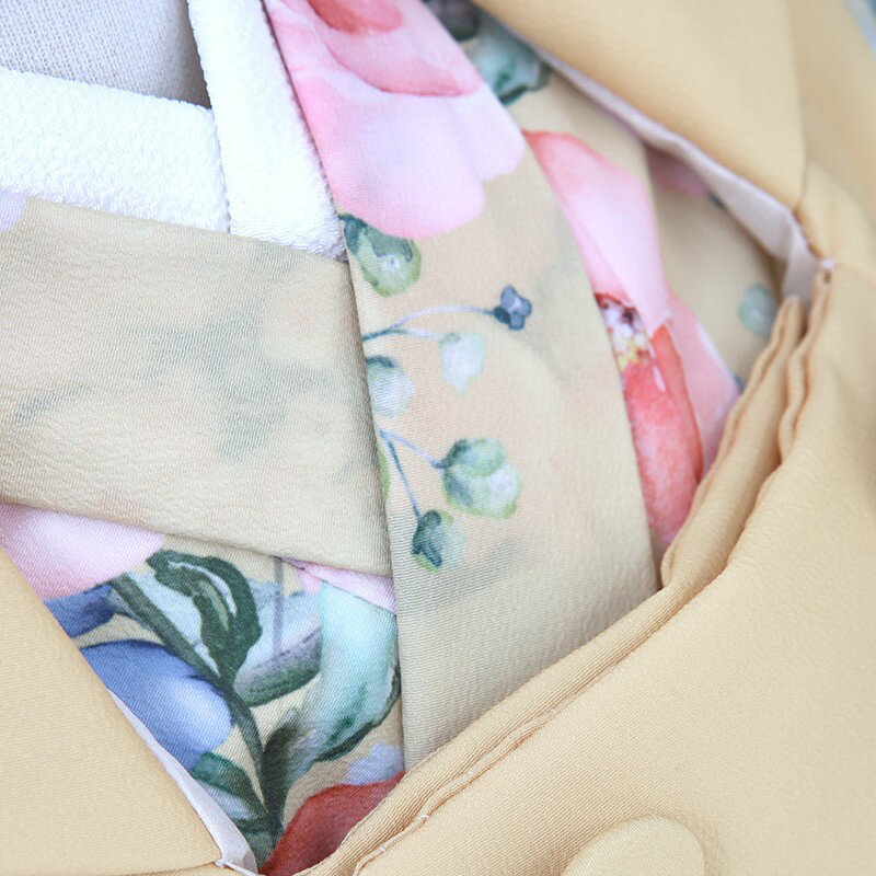 ほんの少し色味の違う黄色の着物と被布を合わせることで統一感が出て上品な印象を与えます。